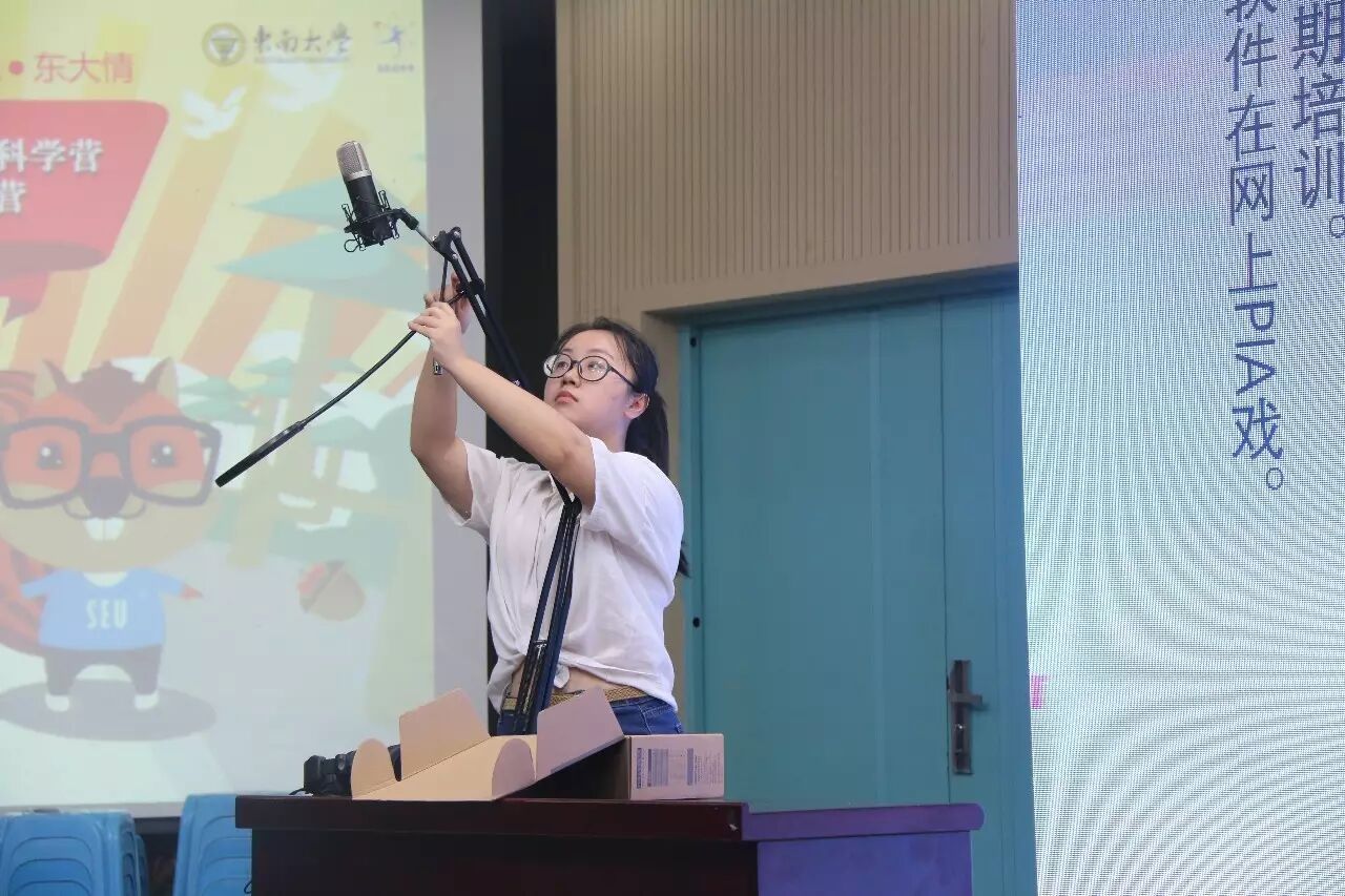 流行乐团的孙贺同学作为科学营一班的志愿者,在社团体验活动的最后还为大家带来了一首“东大版”的《成都》。