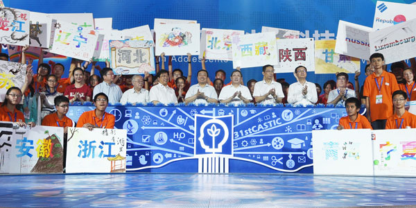 开幕式上,尚勇、杨雄、徐延豪、周波和施一公院士、王乃彦院士等共同浇灌象征着青少年科技创新人才成长的创新之树,正式启动了第31届全国青少年科技创新大赛。