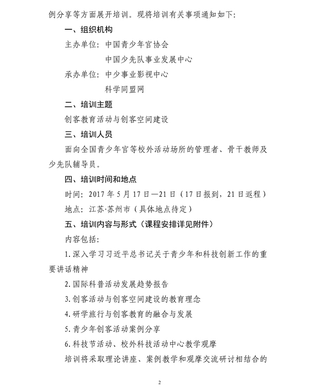 【转发】关于举办2017年少年儿童STEAM教育活动“创客教育活动与创客空间建设”专题培训的通知