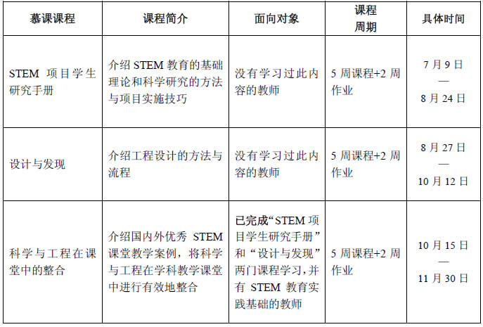 为了更好地推进江苏省STEM教育项目试点工作,提升项目学校开展STEM教育的理论水平,扩大培训的辐射面和提升培训质量,决定面向所有试点学校开设大规模在线学习即慕课(MOOC)培训。