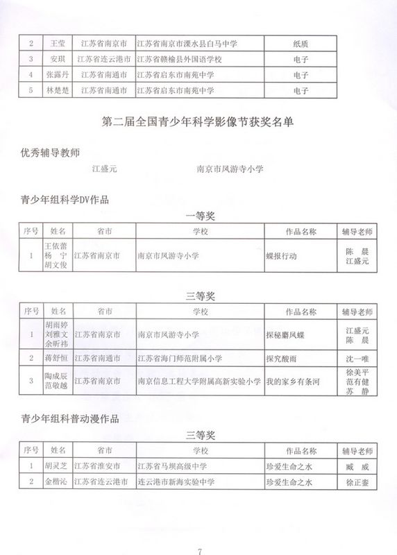 关于公布“体验科学,快乐成长”2018年江苏省青少年科学调查体验活动获奖结果的通知